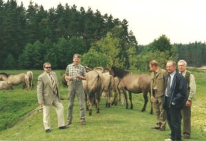 Pogrzeby w naszej kulturze należą do smutnych uroczystości, ale do tych nieuniknionych. Ostatnią taką uroczystością dla środowiska koniarzy był pogrzeb Profesora Mariana Kapronia, jaki miał miejsce w dniu 3 marca 2026 roku, na cmentarzu przy ul. Unickiej w Lublinie. Profesor Marian Kaproń to wybitny hipolog, wykładowca akademicki, wychowawca wielu roczników studentów, promotor prac dyplomowych i prac doktorskich. Autor kilku książek oraz kilkuset artykułów naukowych i popularno-naukowych, jak również ekspertyz i programów hodowlanych, tematycznie związanych z końmi. Dla hodowców i miłośników koników polskich to również nasz Kolega, który był jednym ze współzałożycieli naszego Związku. Brał udział w zebraniu założycielskim Sekcji Hodowców Koników Polskich, jakie odbyło się 26.10.1998 roku w Jastrzębcu. Podczas tego zebrania został wybrany do Zarządu, gdzie pełnił funkcję wiceprezesa. Był nim również podczas drugiej kadencji Zarządu, tj. do roku 2006. Brał czynny udział w opracowywaniu pierwszej wersji „Programu hodowli zachowawczej koników polskich”, jaka została zatwierdzona przez Ministra Rolnictwa w 1999 roku. Był głównym współautorem opracowanego w 1985 roku „Projektu programu hodowli koników polskich”, jaki powstał w ramach dużego projektu badawczego, obejmującego także inne rasy, koordynowanego przez prof. Ewalda Sasimowskiego. W 1999 roku został powołany przez Zarząd Główny PZHK do Komisji Księgi Stadnej Koni Rasy Konik Polski, w skład której wchodził do 2012 roku. Wielokrotnie, na naszych konikowych imprezach hodowlanych, m.in. w Sierakowie na Tarpaniadzie, czy w Zwierzyńcu, pełnił funkcję sędziego komisji oceny podczas wystaw, bądź przy wpisie ogierów i klaczy do księgi. Profesor Marian Kaproń, absolwent studiów zootechnicznych ówczesnej Akademii Rolniczej w Lublinie, zawodowo najdłużej związany był ze swoją macierzystą uczelnią, a przez ostatnie kilkanaście lat, przed odejściem na emeryturę, z Uniwersytetem Przyrodniczo-Humanistycznym w Siedlcach. Jego zainteresowania badawcze związane były głównie z konikami polskimi, ale także w dużej części z polskim koniem szlachetnym półkrwi (był współautorem programu hodowlanego tej rasy) i koni pełnej krwi angielskiej. Jego tak duże zainteresowanie konikami polskimi związane było również z tym, iż od 1992 do 2008 roku prowadził, jako kierownik Katedry Hodowli i Użytkowania Koni UP w Lublinie, nadzór naukowy nad hodowlą koników polskich w RPN Zwierzyniec. W latach 1992 – 2020 był także członkiem Rady Naukowej Parku. Większość projektów badawczych, jakie koordynował, dotyczyła populacji koników polskich w RPN Zwierzyniec, praktycznie od momentu powstania tej hodowli, tj. 1982 roku. Ich zakres obejmował aklimatyzację i bytowanie w warunkach rezerwatowych, behawior, wzrost i rozwój oraz różne formy ich użytkowania. W środowisku naukowym postrzegany był jako wybitny naukowiec, o bardzo wszechstronnej wiedzy, nie tylko hipologicznej, posługujący się piękną polszczyzną, także tą mówioną, którego z przyjemnością czytaliśmy i słuchaliśmy. Powszechnie lubiany, znany z ciętego dowcipu (ale bez złośliwości), a ze wspólnych imprez ogniskowych, jako doskonały gawędziarz, a przy tym jako osoba śpiewająca końskie piosenki, obdarzona wspaniałym głosem.
